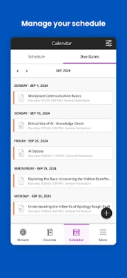 Descoperă o nouă dimensiune a educației cu aplicația Blackboard, partenerul tău digital esențial. Concepută pentru a simplifica viața academică a studenților, această platformă intuitivă îți permite să fii mereu la curent cu dinamica cursurilor tale. Vei primi alerte în timp real pentru termene limită importante, anunțuri cruciale și modificări ale programului, asigurându-te că nu ratezi nimic. Gestionează-ți cu ușurință toate sarcinile, de la completarea și trimiterea temelor, la susținerea testelor și urmărirea progresului tău academic. Verifică notele obținute la cursuri, proiecte și evaluări cu doar câteva atingeri, având o imagine clară asupra performanței tale. Aplicația Blackboard transformă abordarea studiului într-o experiență mai organizată și eficientă.