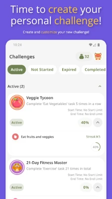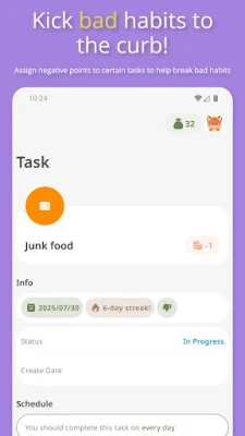 Ducând motivația la un alt nivel, "Habit Tracker: Goals & Rewards" te invită să-ți creezi provocări personalizate, cum ar fi înregistrări consecutive timp de șase zile sau completarea unei sarcini specifice de 12 ori. Acestea nu doar că adaugă un strat suplimentar de implicare, dar îți pot aduce și puncte bonus sau recompense suplimentare la finalizare, alături de insigne speciale pentru profilul tău, ce atestă fiecare succes. Mai mult, aplicația oferă o strategie ingenioasă pentru a combate obiceiurile dăunătoare: prin deducerea punctelor de fiecare dată când cedezi unei tentații, impactul negativ devine imediat vizibil, stimulându-te să reduci și, în cele din urmă, să elimini acele comportamente. Gestionează-ți sarcinile repetitive cu flexibilitate, fie zilnic, în anumite zile ale săptămânii, fie lunar, și urmărește-ți evoluția cu ușurință.