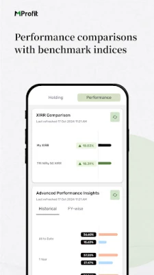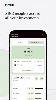 Descoperiți libertatea de a vă gestiona investițiile oriunde v-ați afla cu aplicația mobilă MProfit. Proiectată pentru a vă aduce contul MProfit direct pe dispozitivul dumneavoastră Android, această soluție inovatoare vă asigură că sunteți mereu la curent cu toate detaliile portofoliului dumneavoastră. Fie că este vorba de datele PMS și F&O introduse personal pe PC sau de informațiile valoroase partajate de consultantul dumneavoastră financiar, MProfit le transformă într-o experiență accesibilă și intuitivă, permițându-vă să monitorizați evoluția averii cu o precizie remarcabilă.