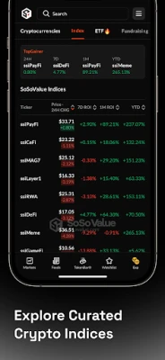 Descoperiți universul dinamic al criptomonedelor cu SoSoValue, o platformă inovatoare concepută pentru a vă oferi o viziune clară și detaliată asupra pieței. Fie că sunteți un investitor experimentat sau abia faceți primii pași, SoSoValue vă echipează cu instrumentele esențiale pentru a naviga în acest peisaj în continuă schimbare. Accesați prețuri actualizate în timp real, date fundamentale și tendințe pentru peste 10.000 de active digitale, inclusiv Bitcoin, Ethereum, Solana și Dogecoin, prezentate într-un format intuitiv și ușor de înțeles. SoSoValue transformă datele brute în informații acționabile, ajutându-vă să rămâneți informat și să anticipați mișcările pieței cu precizie.