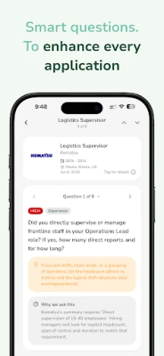 Descoperirea oportunităților începe simplu, printr-o navigare intuitivă. Glisează prin milioane de posturi disponibile și marchează-le pe cele care îți captează atenția. Apoi, în loc de completarea unor câmpuri generice, Sprout analizează cerințele fiecărui rol și îți adresează întrebări specifice, inteligent calibrate. Acestea au rolul de a completa detaliile lipsă din profilul tău, de a clarifica experiența relevantă și de a scoate în evidență punctele tale forte, asigurându-te că fiecare aplicație este cât mai pertinentă. Pe baza acestor interacțiuni și a profilului tău, Sprout generează automat un CV și o scrisoare de intenție, ambele meticulos adaptate pentru poziția vizată.