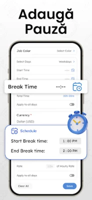 Cu funcționalitatea sa intuitivă, înregistrarea orelor devine o simplitate: un singur gest marchează începutul și sfârșitul turei, lăsându-te liber să te dedici sarcinilor fără grija cronometrării. Această platformă este un aliat esențial pentru cei care jonglează cu mai multe proiecte sau angajamente, oferind flexibilitatea de a configura profiluri distincte pentru fiecare loc de muncă, cu tarife orare personalizate și politici de ore suplimentare. Mai mult, algoritmul integrat îți calculează automat veniturile, incluzând orele obișnuite, suplimentare și pauzele, oferind o perspectivă clară și în timp real asupra situației tale financiare.