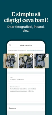 Transformă articolele tale nefolosite în noi oportunități cu Vinted. Procesul este incredibil de simplu și complet gratuit: imortalizează-ți produsul, adaugă o descriere concisă și stabilește prețul dorit. Îți păstrezi integral 100% din fiecare vânzare, fără comisioane ascunse. De la haine iubite cândva și electrocasnice mici, până la accesorii pentru animale de companie, obiecte de colecție sau jucării pentru copii, ai libertatea de a monetiza o gamă variată de produse. Urmărește-ți veniturile crescând și transferă sumele direct în contul tău bancar. În plus, cumpărătorii sunt responsabili pentru costurile de transport, iar tu primești etichete preplătite pentru o expediere fără bătăi de cap.