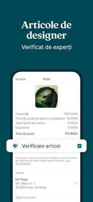 Elevează-ți stilul cu încredere deplină, optând pentru articole de designer verificate. Cu Vinted, ai posibilitatea de a solicita un serviciu de verificare a autenticității pentru piese selectate, realizat de echipa noastră de experți. Aceștia examinează personal fiecare articol, garantându-ți că investiția ta se îndreaptă către un produs original. Primești doar articole care trec cu succes acest control riguros, în caz contrar beneficiind de o rambursare integrală. Adaugă acest serviciu de verificare în momentul finalizării plății pentru o liniște sufletească sporită. În România, Polonia, Grecia și Ungaria, o comunitate vibrantă de entuziaști second-hand te așteaptă să te alături, să împărtășești pasiuni, să primești actualizări și să gestionezi toate comenzile într-un singur loc.