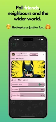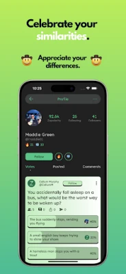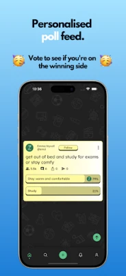 Cu Zoplo, fiecare sondaj devine un punct de plecare pentru dezbateri captivante. Votați pentru a dezvălui rezultatele imediate și pentru a compara viziunea dumneavoastră cu cea a celorlalți. Secțiunea de comentarii, organizată vizual prin culori specifice fiecărei opțiuni de vot, transformă orice discuție într-o experiență clară și distractivă. Exprimați-vă punctul de vedere, dezbateți argumente și contribuiți la dialoguri vii, transformând întrebările banale și subiectele fierbinți în conversații sociale și antrenante. Zoplo este locul unde vocile se întâlnesc și ideile prind contur.